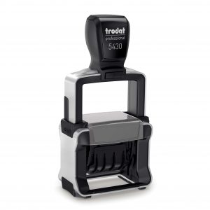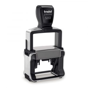Dátumová textová samonamáčacia pečiatka rady Printer Line s maximálnou plochou odtlačku 64×40 mm, formát dátumového odtlačku DD.MM.RRRR. Výška dátumu: 4mm